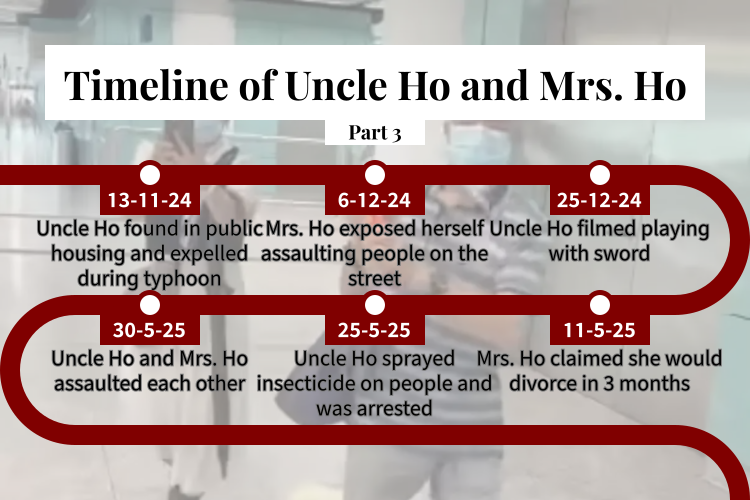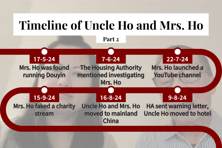 In August, the Housing Authority decided to send a letter to Mrs. Ho. Fearing the consequences, she immediately took Uncle Ho to a hotel, claiming, "Oh! We are staying in a hotel now. We are not living in our public housing anymore. We are just cooking, doing laundry, and packing our bags there," before taking Uncle Ho back to mainland China.